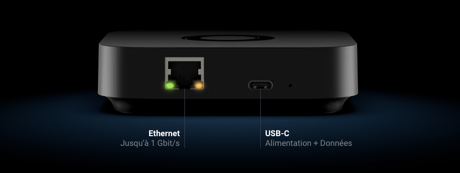 Ce prix inclut un boîtier compact équipé de deux connecteurs : un port RJ45 pour la connexion réseau et un port USB-C pour l’alimentation. Ce dernier pourra également servir pour effectuer des sauvegardes locales depuis un Mac ou un PC.
