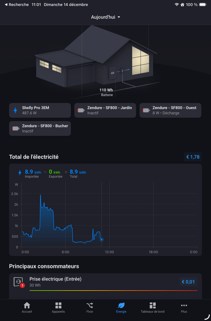 Tout n’est pas encore optimal à ce stade, mais cela me donne l’occasion de vous présenter les possibilités actuelles de l’intégration Zendure dans Homey, en gardant à l’esprit que celle-ci est appelée à évoluer.