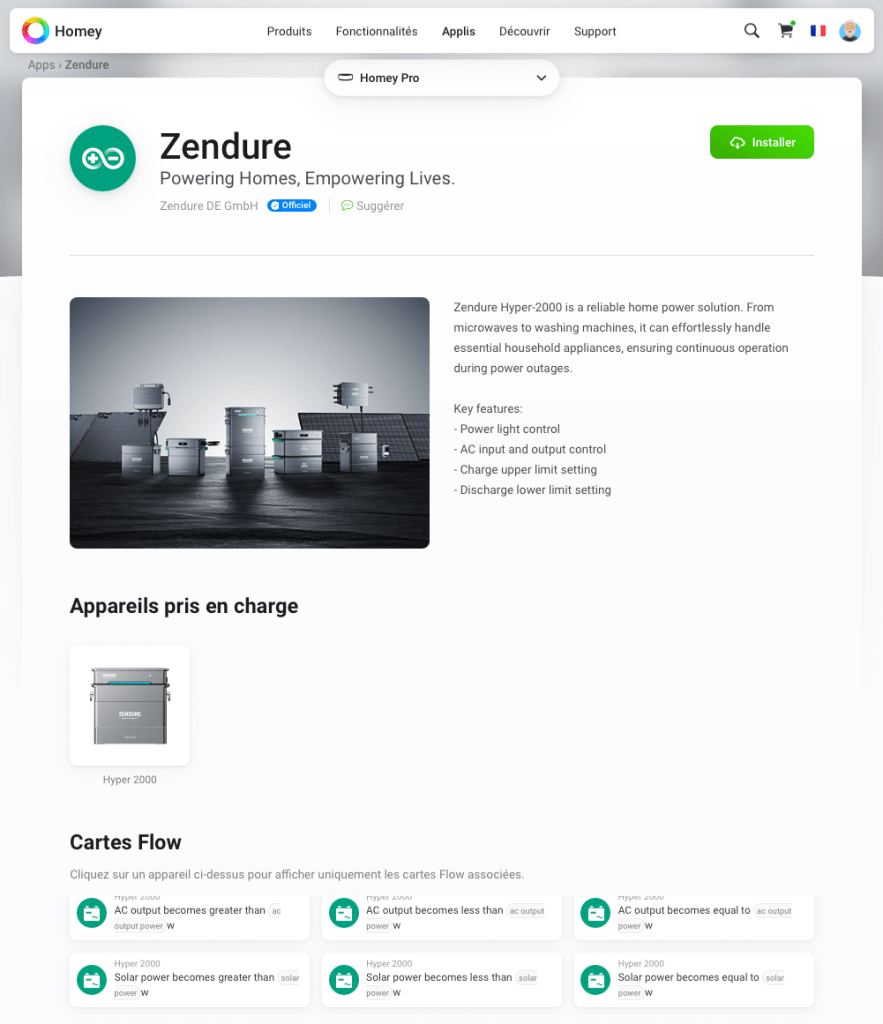 Lien vers l’application : https://homey.app/fr-fr/app/com.zendure.flow/Zendure/
