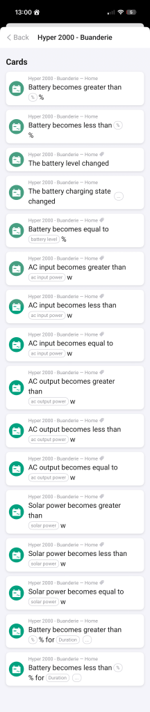 Ces cartes permettent de réagir à des événements concrets, comme une montée en charge de la batterie, l’apparition d’un surplus solaire ou une augmentation de la consommation de la maison. Elles constituent la base de toute automatisation énergétique.