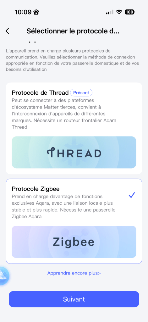 Par défaut, ces deux appareils sont livrés en mode Thread / Matter, afin de simplifier leur adoption dans des plateformes comme Apple HomeKit ou Google Home. Lors de la première configuration, il est toutefois possible et même explicitement proposé de basculer vers le mode Zigbee en quelques étapes seulement.