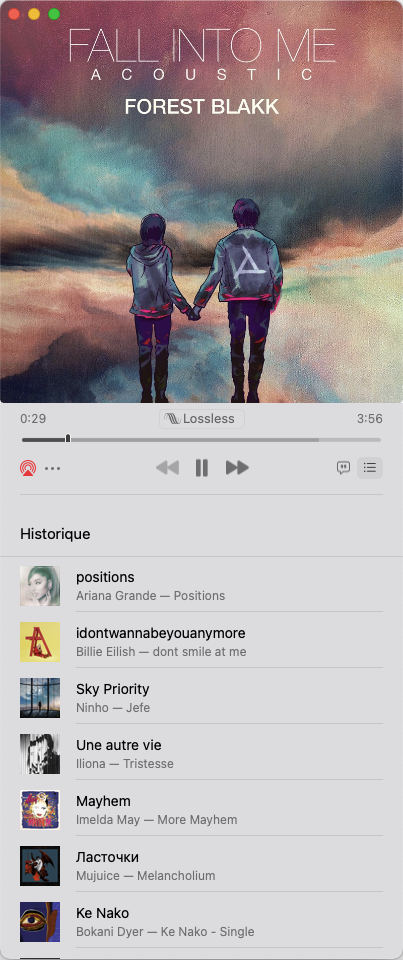 Contrairement aux Playlists les morceaux suivants ne sont pas indiqués, si vous aimez une musique et que vous souhaitez la garder, il faut l’ajouter à une playlist. Il est possible en naviguant dans l’historique de lecture de retrouver les morceaux joués.