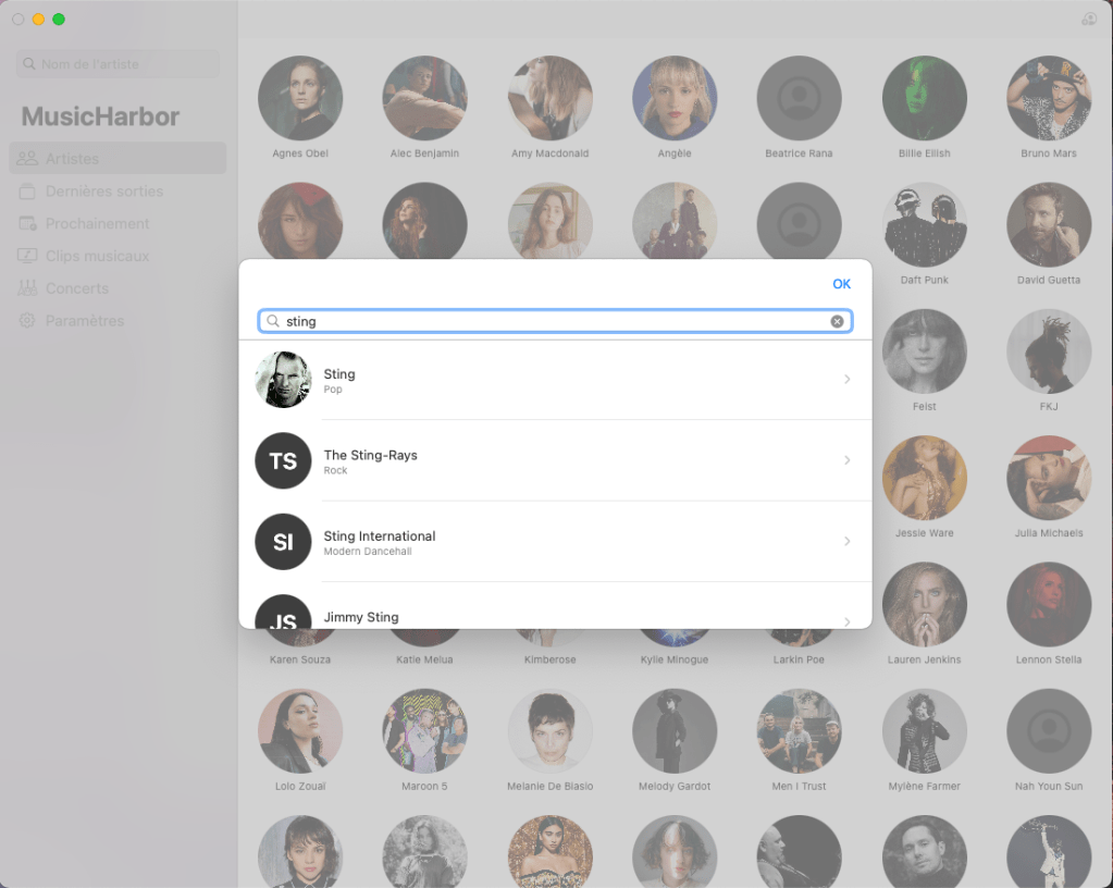 Il est possible de spécifier le morceau en indiquant le groupe ou l’interprète, cela permet d’éliminer les albums ou artistes :