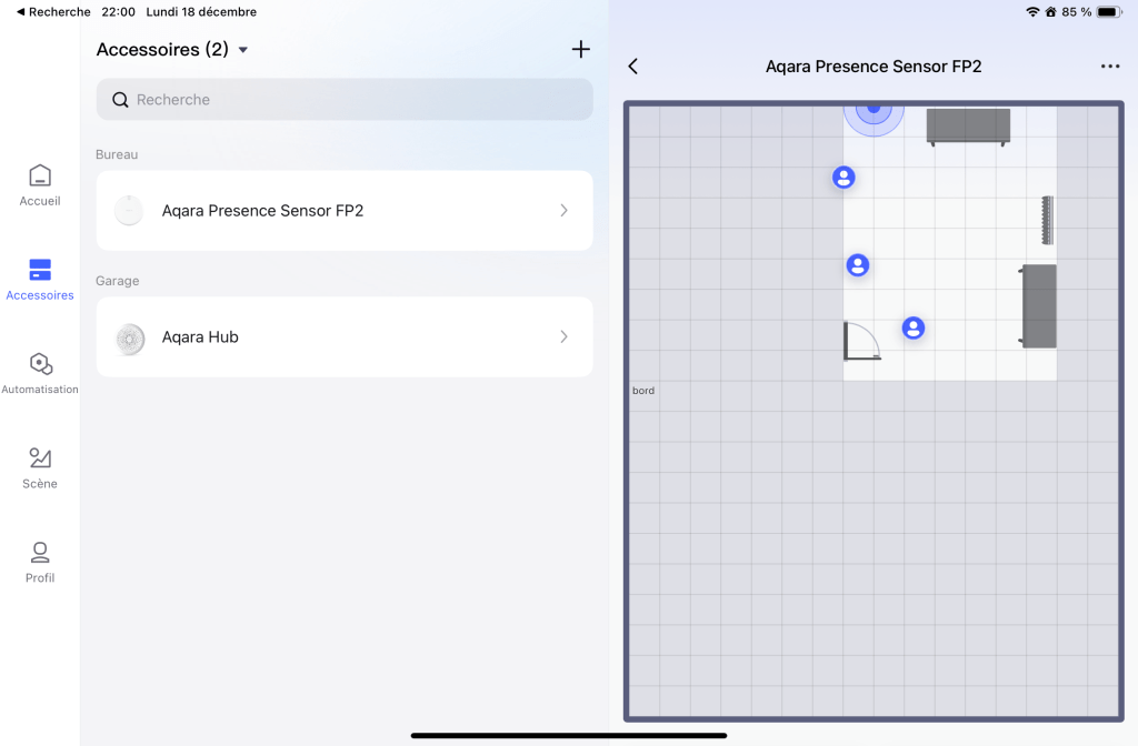 Autre automatisation pratique : lorsque la dernière personne quitte la maison, Homey baisse automatiquement la consigne à 17°C. Aqara peut aussi faire ce type de règle, mais Homey est plus efficace lorsqu’il faut gérer plusieurs occupants.