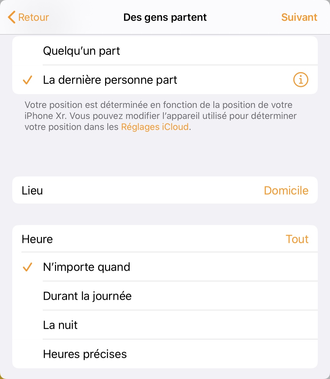 Vous pouvez paramétrer quelles détections vous souhaitez recevoir, à quelles heures, et même créer des automatisations : par exemple, éteindre la caméra automatiquement lorsque vous êtes chez vous.