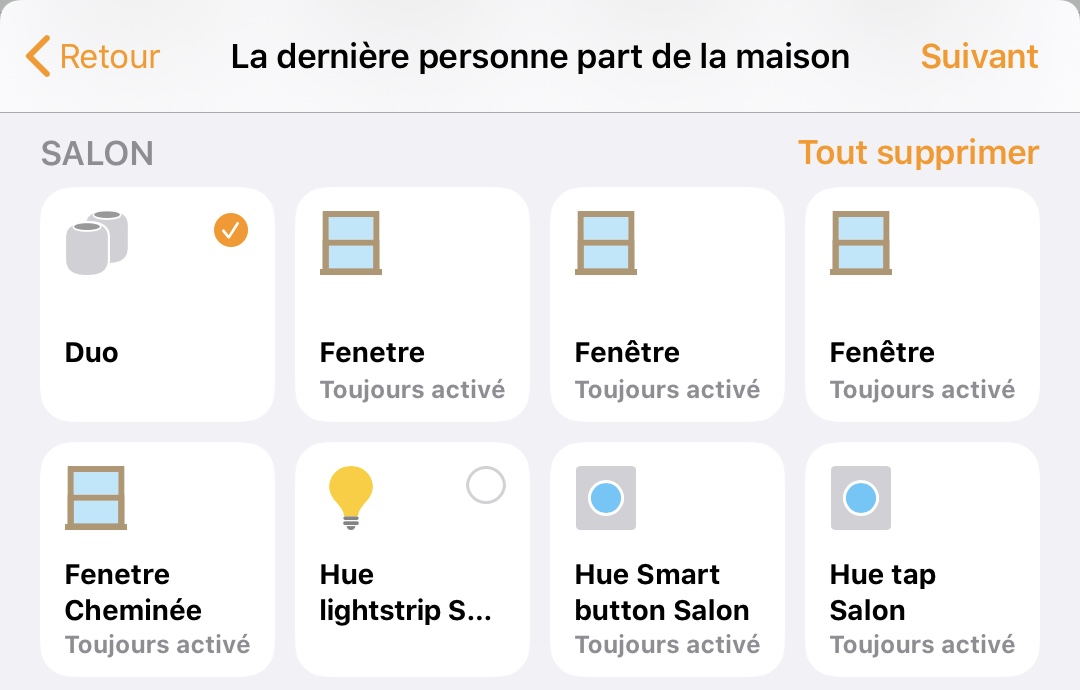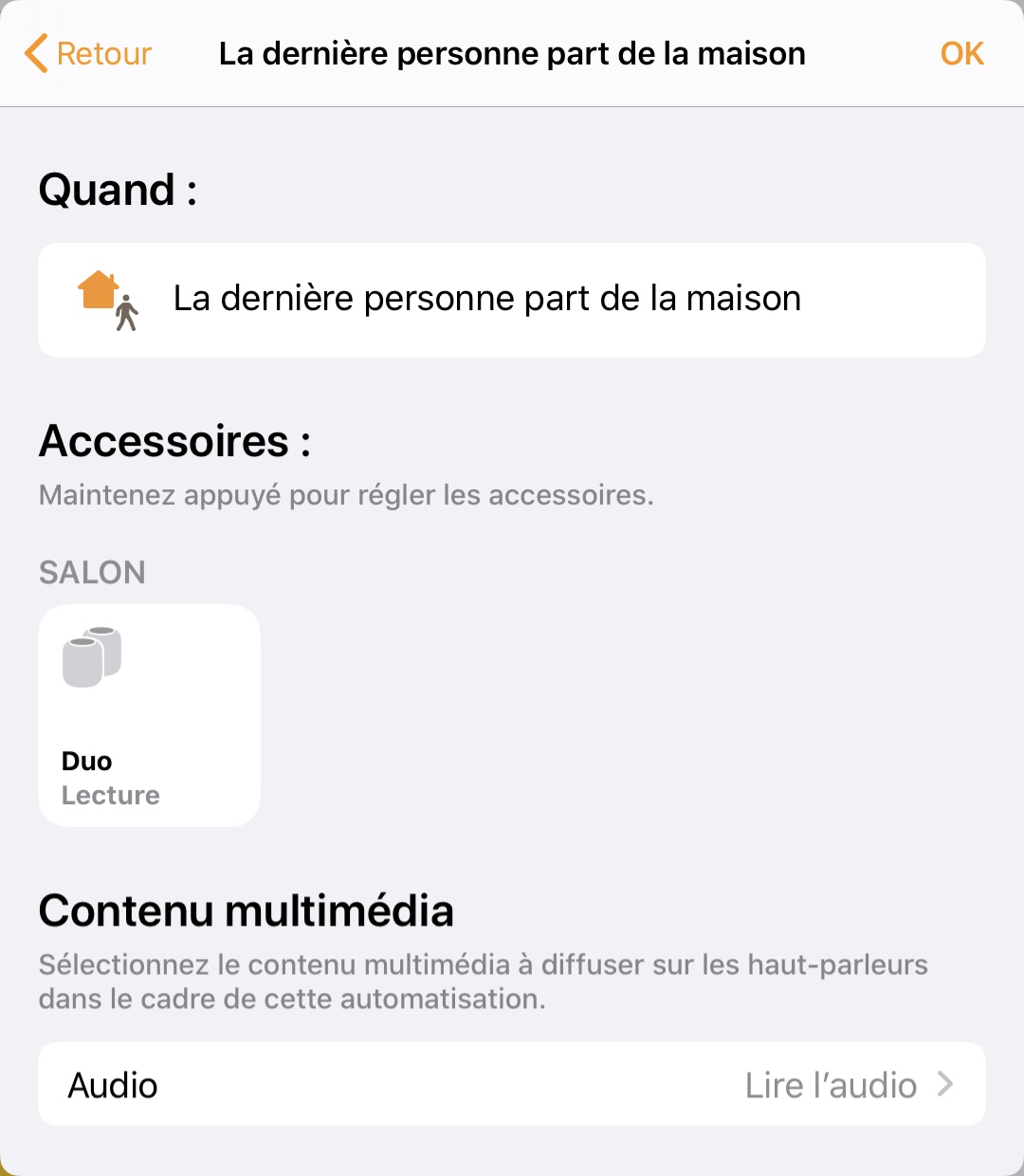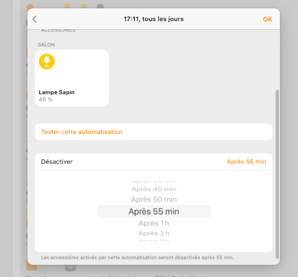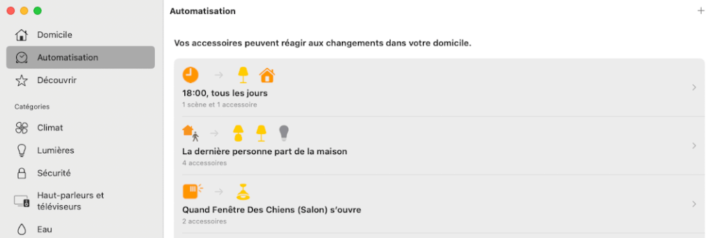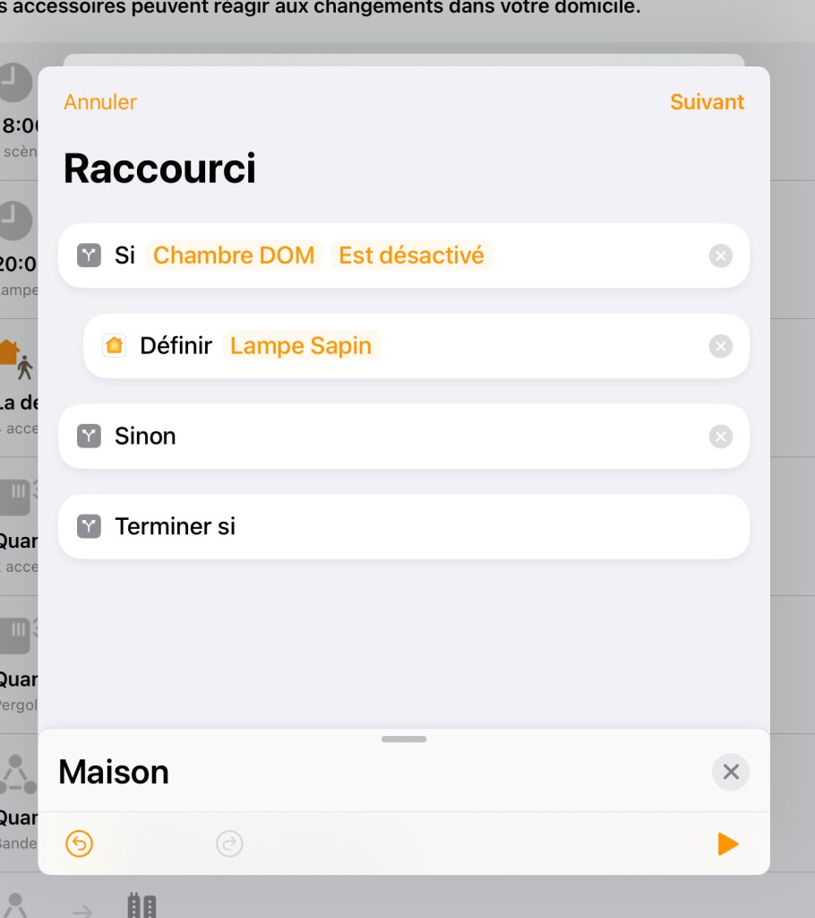 Dans la dernière, il est possible d’automatiser des actions HomeKit. Mais attention cette implémentation est alambiquée et mérite une meilleure approche.