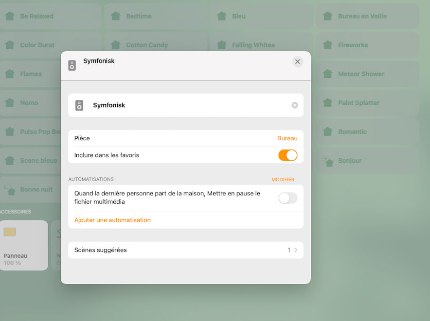 Une fois synchronisée, cette scène apparaîtra comme un interrupteur virtuel dans HomeKit ou Home Assistant. En un clic (ou via Siri, Alexa ou une automatisation HA), vous pourrez activer la scène et déclencher l’automatisation.