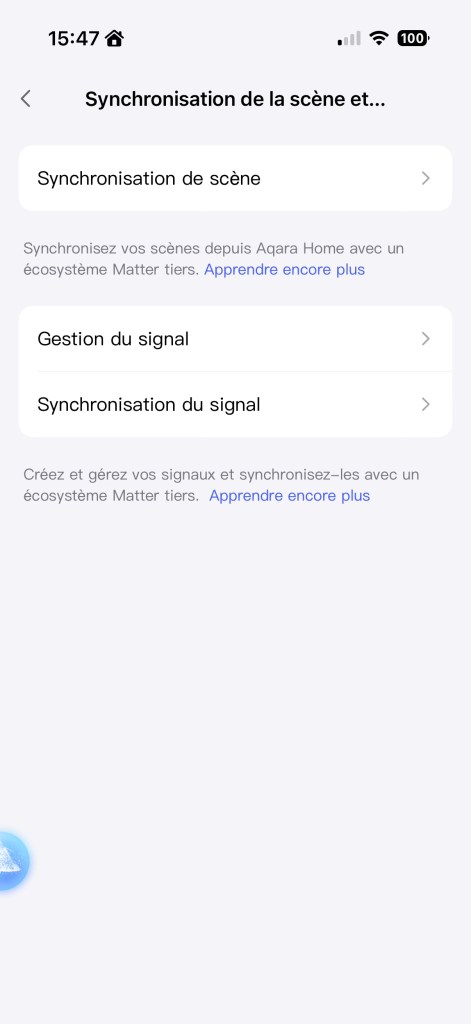 La scène Aqara agit comme un pont. Elle permet de regrouper plusieurs actions, d’appeler des automatisations, et surtout, d’être partagée via Matter avec d’autres plateformes.