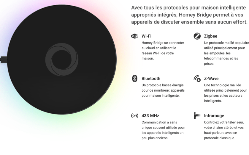 Attention le nombre de matériels supportés dépendra du modele pour lequel vous opterez, le boitier Homey pro aura bien sur une plus large couverture.