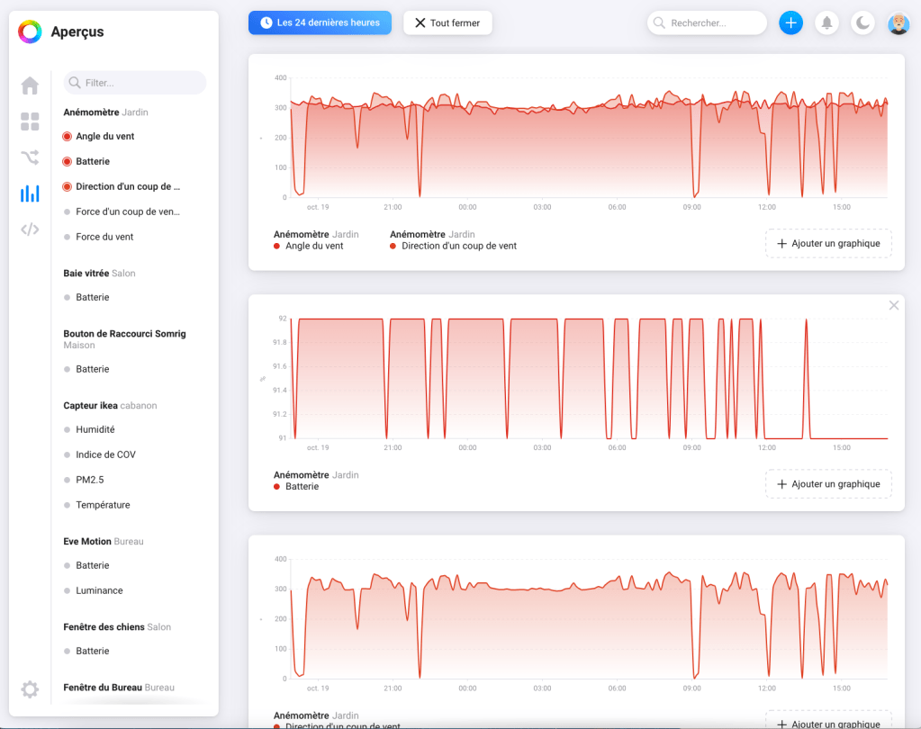 Et en cliquant sur Dashboard, on retrouve l’historique des 3 valeurs.
