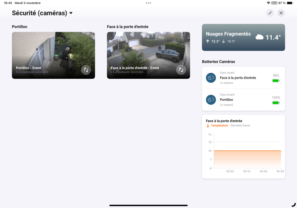 Enfin, il est possible de définir une fréquence de mise à jour des mesures, applicable lorsqu’aucune alerte spécifique n’est déclenchée. Dans mon cas, j’ai choisi un intervalle de 5 minutes, ce qui s’avère amplement suffisant pour un usage quotidien. Plus la fréquence est courte, plus la consommation de batterie augmente : il faut donc trouver le bon compromis entre réactivité et autonomie. Par défaut, l’appareil est réglé sur 5 minutes, mais vous pouvez ajuster cet intervalle entre 30 secondes et 1 heure, selon vos besoins et vos priorités. (ceci n’est pas possible sur l’UP-Sens ).