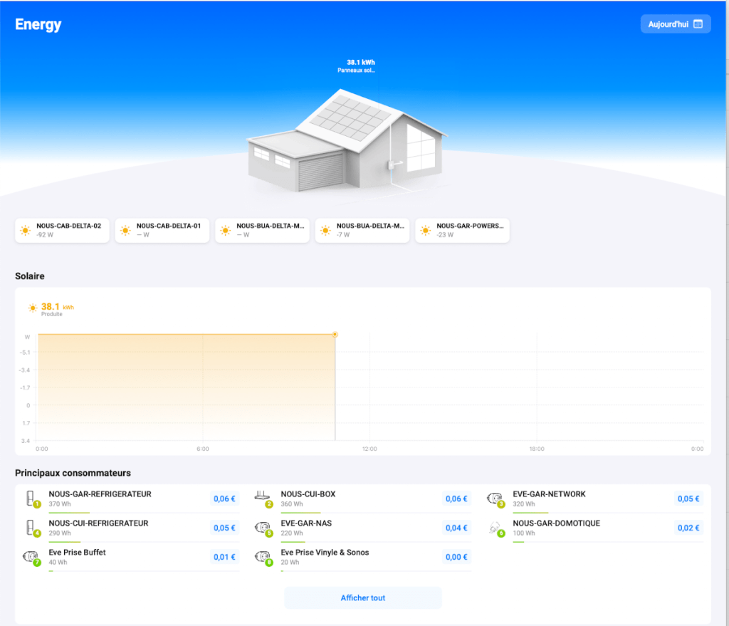 Les deux versions permettent de suivre la consommation énergétique de la maison et d’obtenir des rapports (insights). Ces fonctionnalités sont particulièrement utiles pour optimiser l’efficacité énergétique et réduire les coûts. Aucune différence significative n’est à noter ici.