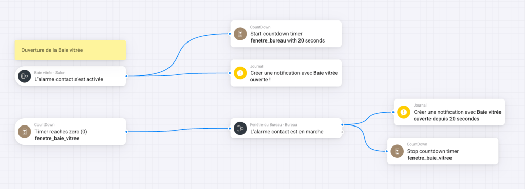 Pour toutes mes automatisations avancées, j’utilise Homey Pro. Son éditeur visuel permet de créer des scénarios complexes beaucoup plus facilement qu’avec de simples règles du type SI / ALORS.