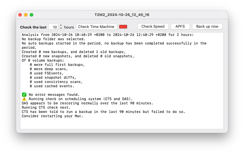 T2M2 est un outil essentiel lorsque vous souhaitez analyser les opérations effectuées par Time Machine et diagnostiquer d’éventuels problèmes. Cet utilitaire est gratuit et est disponible à cette adresse : https://eclecticlight.co/tag/t2m2/ .