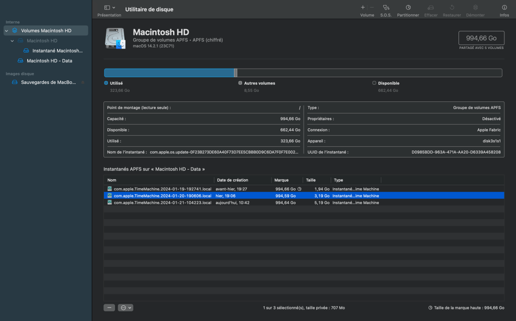 Lorsque vous activerez Time Machine en local, vous constaterez que cet espace augmente, il s’agit là des fichiers générés par les sauvegardes intermédiaires de Time Machine.