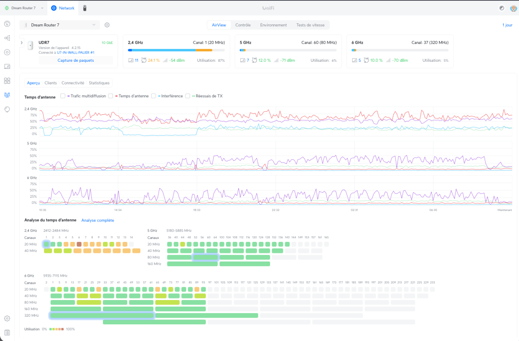 Enfin, si la portée Wi-Fi ne suffit pas pour un grand logement, le Dream Router s’intègre facilement dans une solution mesh : on peut lui ajouter un ou plusieurs points d’accès UniFi supplémentaires (par ex. un UniFi U6 Mesh ou un futur UniFi U7 Mesh) qui étendront le Wi-Fi dans les zones éloignées. Tout restera géré depuis le même contrôleur, avec un roaming transparent des appareils d’une borne à l’autre.
