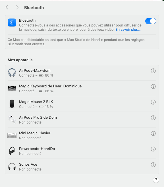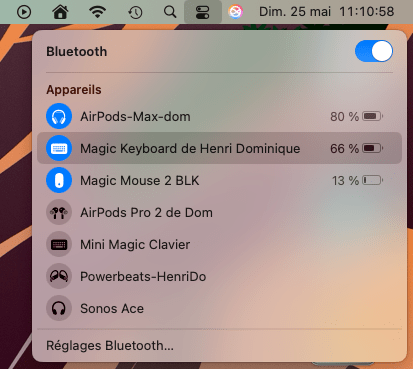 - Maintenez la touche Option en cliquant sur l’icône Bluetooth.