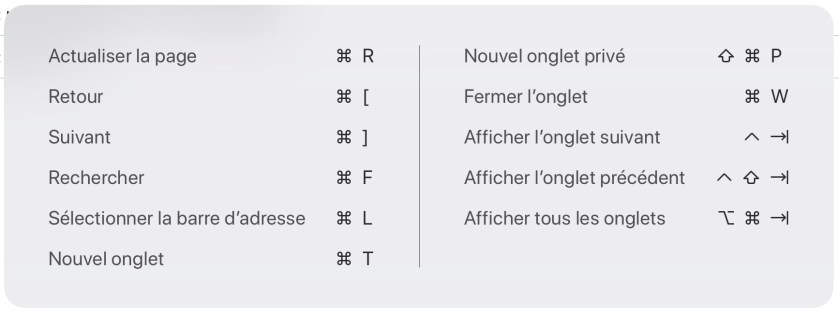 Lorsque que vous êtes en mode affichage par onglet comme indiqué dans le menu « Affichage, vous devez presser la combinaison des trois touches : Command + Maj + \ . Vous devez vous poser la question, comment obtenir cette barre oblique ? Elle s’obtient en pressant : Maj + alt + la touche « / ».