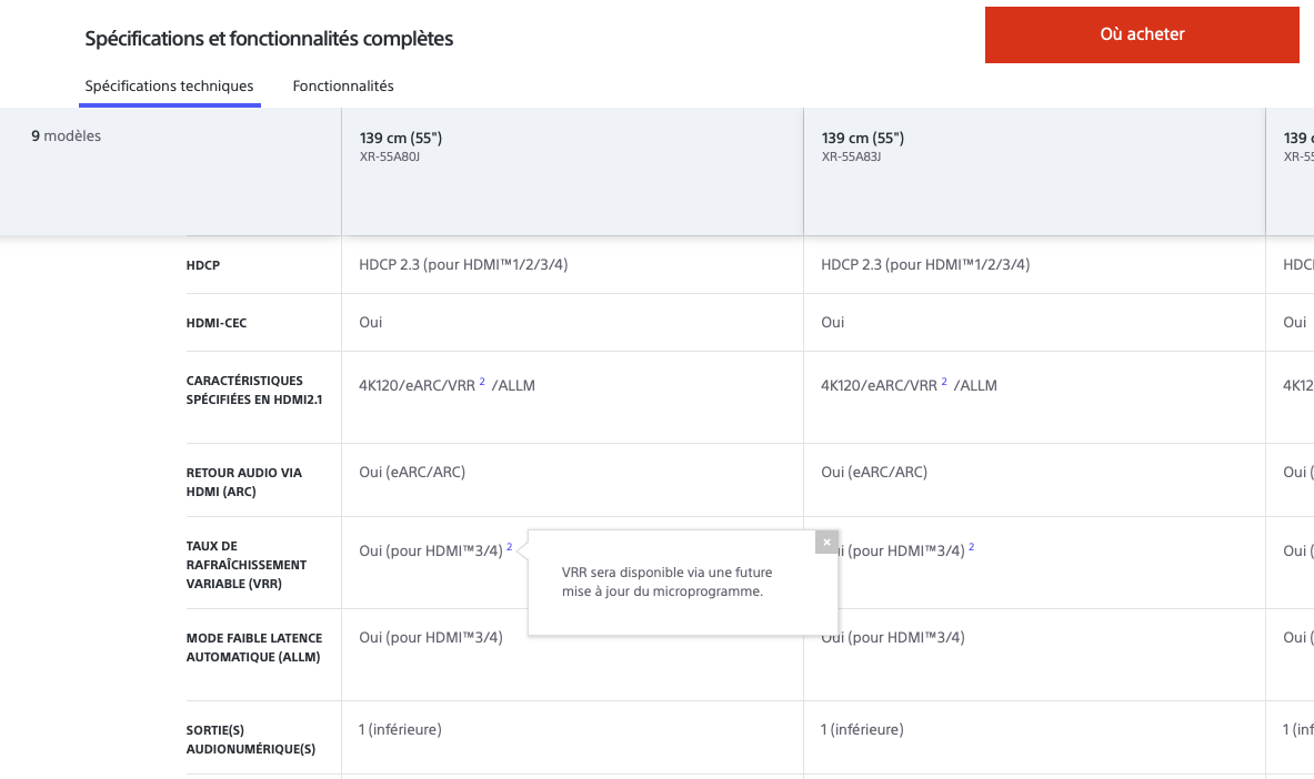 (informations sur des TV Sony compatibles HDMI 2.1, elles prennent en charge la 4k 120 images par secondes)