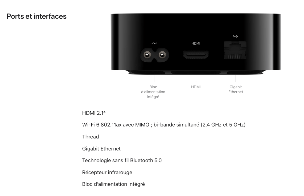 L’Apple TV 4K est limité dans son taux de rafraichissement. l’Apple TV 4K prend en charge des sorties vidéos HDR jusqu’à 4K à 60 i/s.